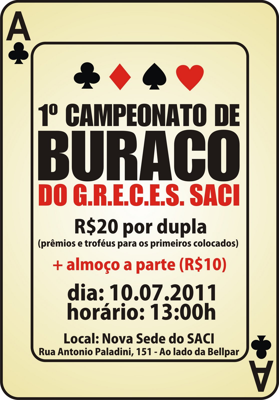2) ChurrasSACI: churrasco de confraternização entre sacizenses, com samba e pagode (Coquinho & Cia), na sede social (Rua Alberto Paladini, 151, próximo à Bellpar), a partir das 13 horas;